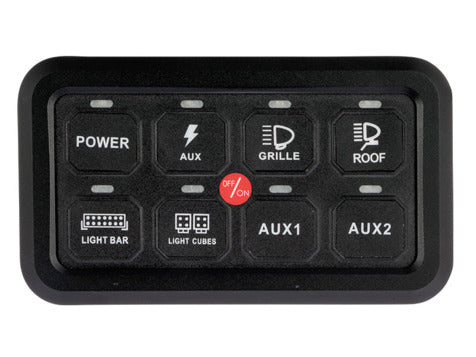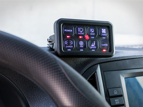 Optibeam kontrollpanel är avsedd att påskynda och underlätta installation och kontroll av ytterligare enheter i olika 12-24V driftsmiljöer med en total effekt på upp till 60 Amp. Separata apparatspecifika säkringar, reläer eller brytare behöver inte längre installeras, utan de funktioner som används kopplas direkt till 8-kanals manöverboxen varifrån de manövreras en 8-knapps manöverpanel.
